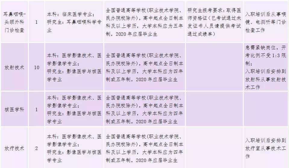 根據(jù)醫(yī)院發(fā)展需要,現(xiàn)面向社會公開招聘護理、院前急救、康復、放射技術(shù)、檢驗、藥學等崗位人事代理工作人員,具體招聘事宜公告如下: