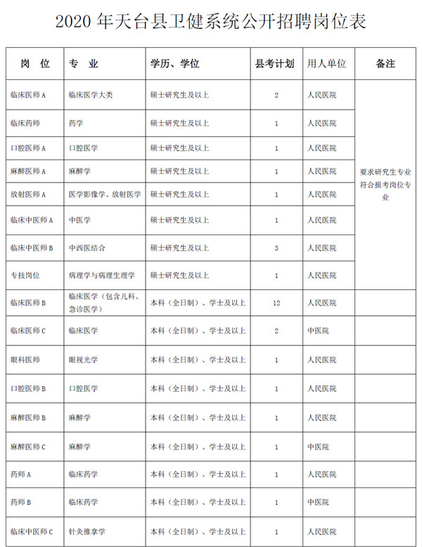 2020年天臺縣醫(yī)療衛(wèi)生招聘84名公告