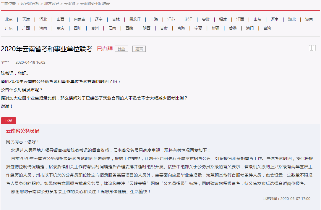 官方發(fā)布2020云南省公務員考試公告5月份發(fā)布