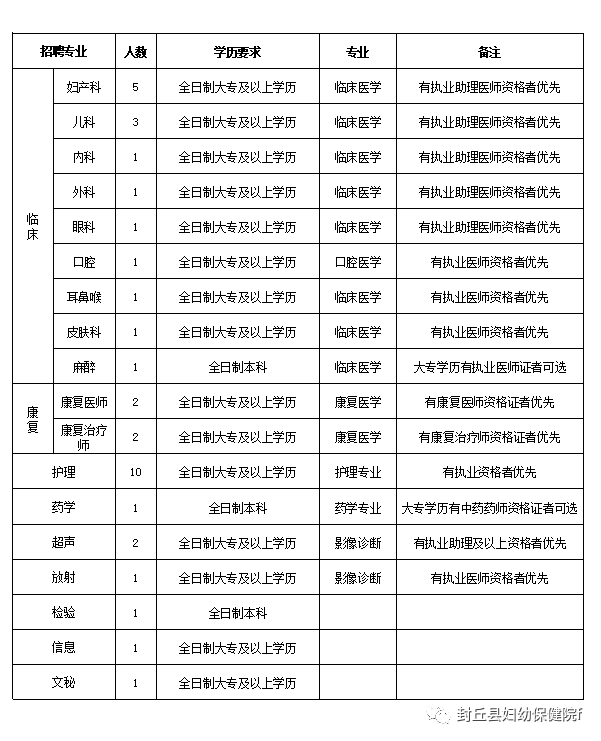 原標題:【招聘】封丘縣婦幼保健院面向社會招賢納士