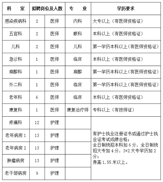 根據(jù)醫(yī)院工作需要,上饒市廣豐區(qū)人民醫(yī)院2020年面向社會(huì)公開(kāi)招聘聘用合同制專業(yè)技術(shù)人員(醫(yī)師16名,護(hù)理人員60名)。現(xiàn)將有關(guān)事項(xiàng)公告如下: