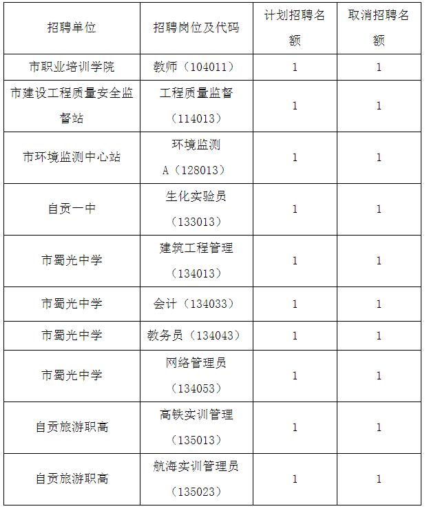 2015四川自貢市屬事業(yè)招聘調(diào)減取消部分崗位公告