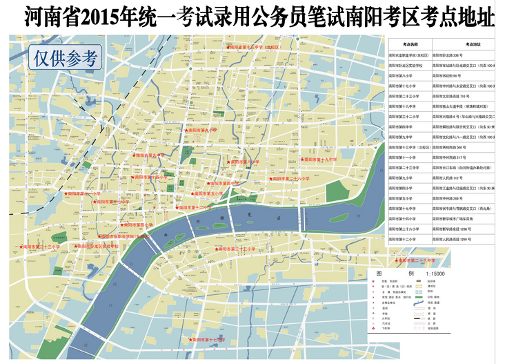 2015河南南陽市公務(wù)員考試筆試各考點具體地址(地圖)