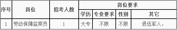 為進(jìn)一步規(guī)范我縣機(jī)關(guān)事業(yè)單位編外人員的管理,根據(jù)我縣《關(guān)于進(jìn)一步加強(qiáng)機(jī)構(gòu)編制和人事管理工作的意見(jiàn)》(景委辦〔2010〕21號(hào))文件精神,經(jīng)研究決定,景寧縣人力資源和社會(huì)局面向社會(huì)公開(kāi)招聘編外工作人員1名,現(xiàn)將有關(guān)事項(xiàng)公告如下: