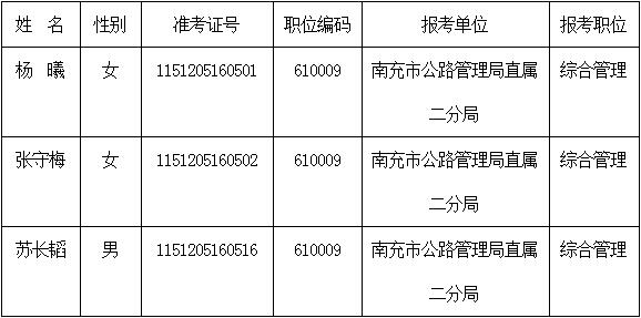 面試資格審查人員名單中所列人員,于2016年 1月21日(星期四)上午9:00-11:30,在南充市公路管理局直屬二分局人事科(南充市高坪區(qū)鶴鳴路194號(hào))進(jìn)行面試資格審查。