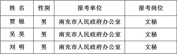 南充市人民政府辦公室公開遴選文秘工作人員面試人員名單