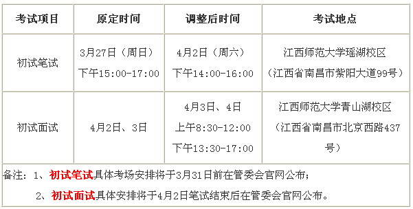 2016江西南昌臨空經(jīng)濟區(qū)管委會調(diào)整初試考試時間緊急通知