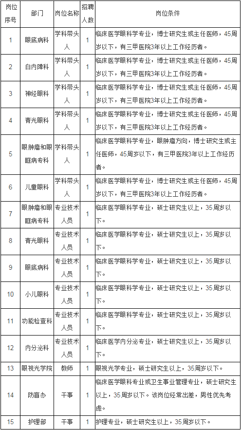 2016上半年江西南昌大學(xué)附屬眼科醫(yī)院高層次人才招聘公告【15人】