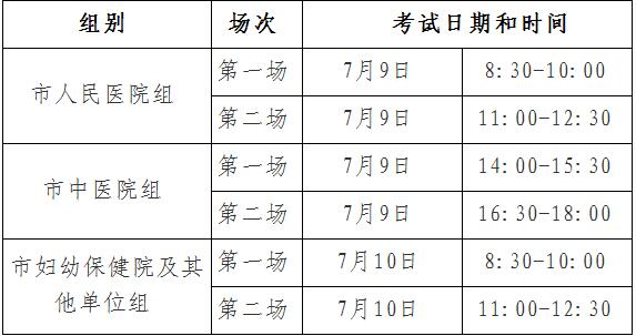 本次筆試分三組進(jìn)行,由于報(bào)考人員多,每組分別進(jìn)行兩場(chǎng)筆試,具體安排為: