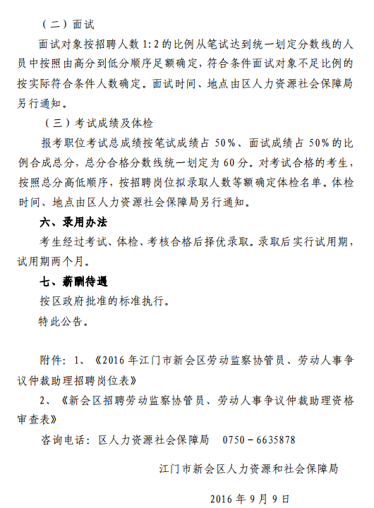 原標(biāo)題:2016年江門市新會(huì)區(qū)人力資源和社會(huì)局公開招聘勞動(dòng)監(jiān)察協(xié)管員公告