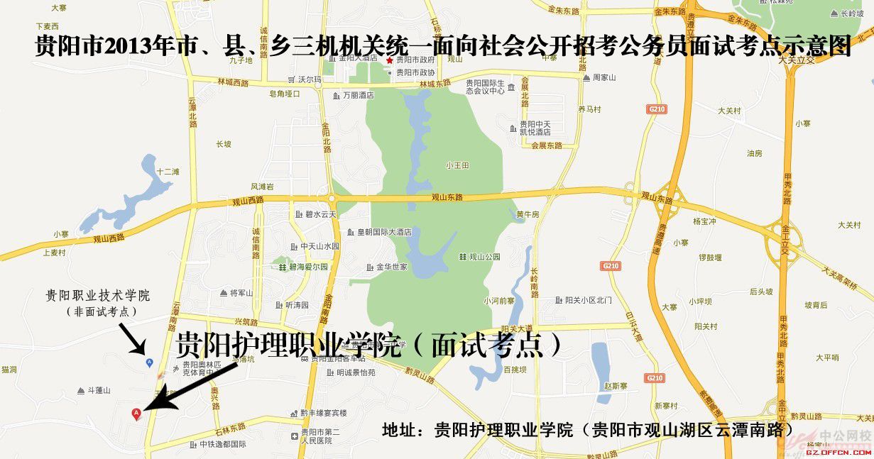 6、貴陽市2013年市、縣、鄉(xiāng)三級機關統(tǒng)一面向社會公開招考公務員面試考點位置圖;