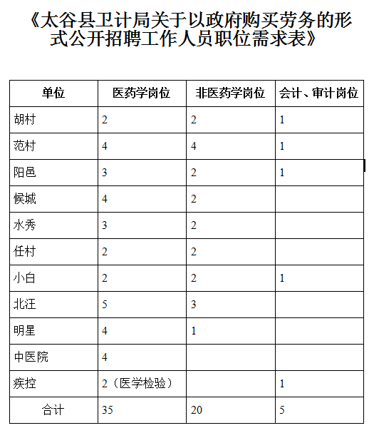 原標(biāo)題:晉中太谷縣衛(wèi)計(jì)局公開招聘60名人員方案