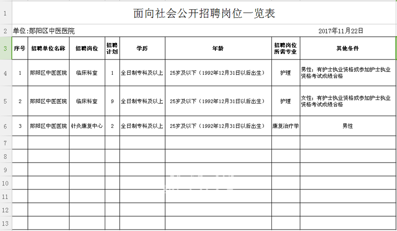 2017年十堰市鄖陽區(qū)中醫(yī)醫(yī)院公開招聘專業(yè)技術人員公告【招12人】