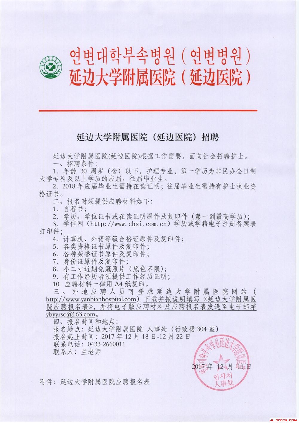 2017年延邊大學(xué)附屬醫(yī)院(延邊醫(yī)院)招聘護士公告