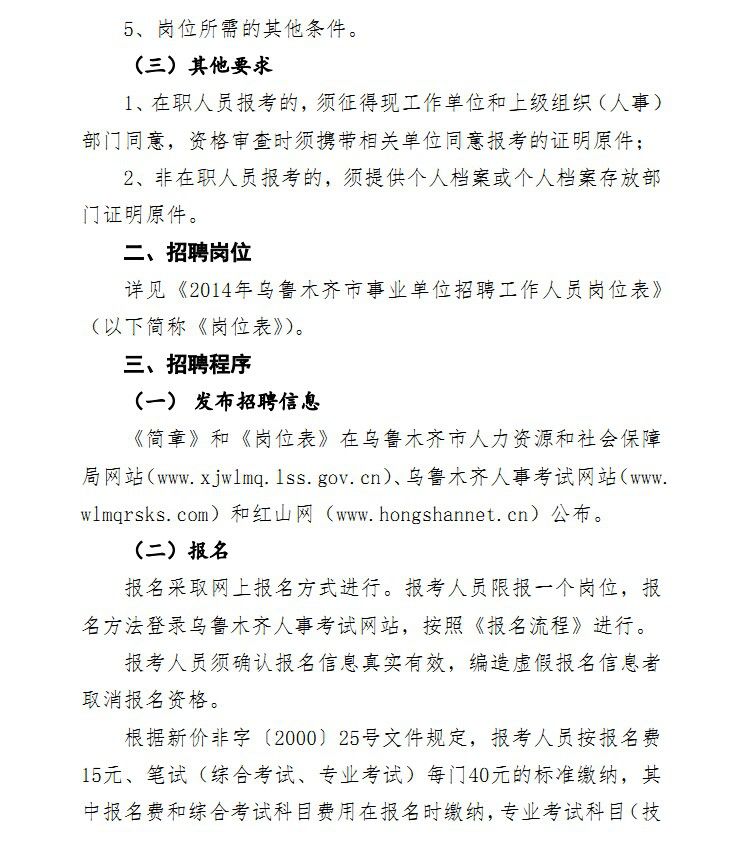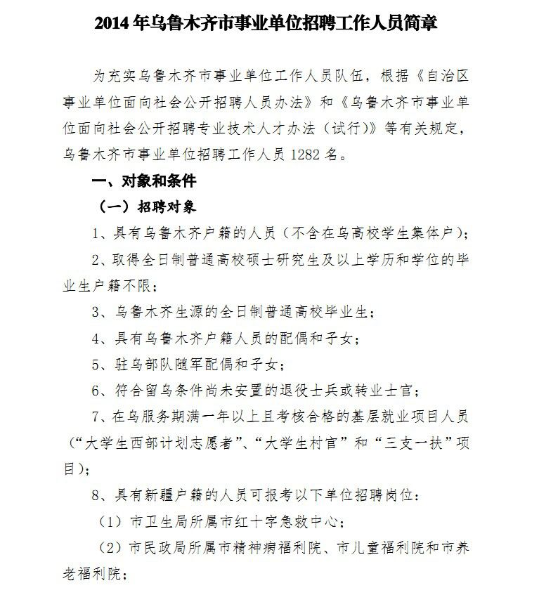 2014年新疆烏魯木齊市事業(yè)單位招聘公告【1282人】