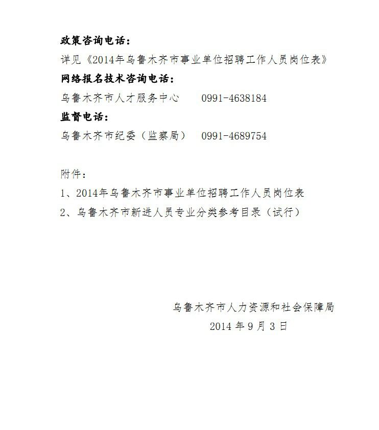1、2014年烏魯木齊市事業(yè)單位招聘工作人員崗位表.pdf