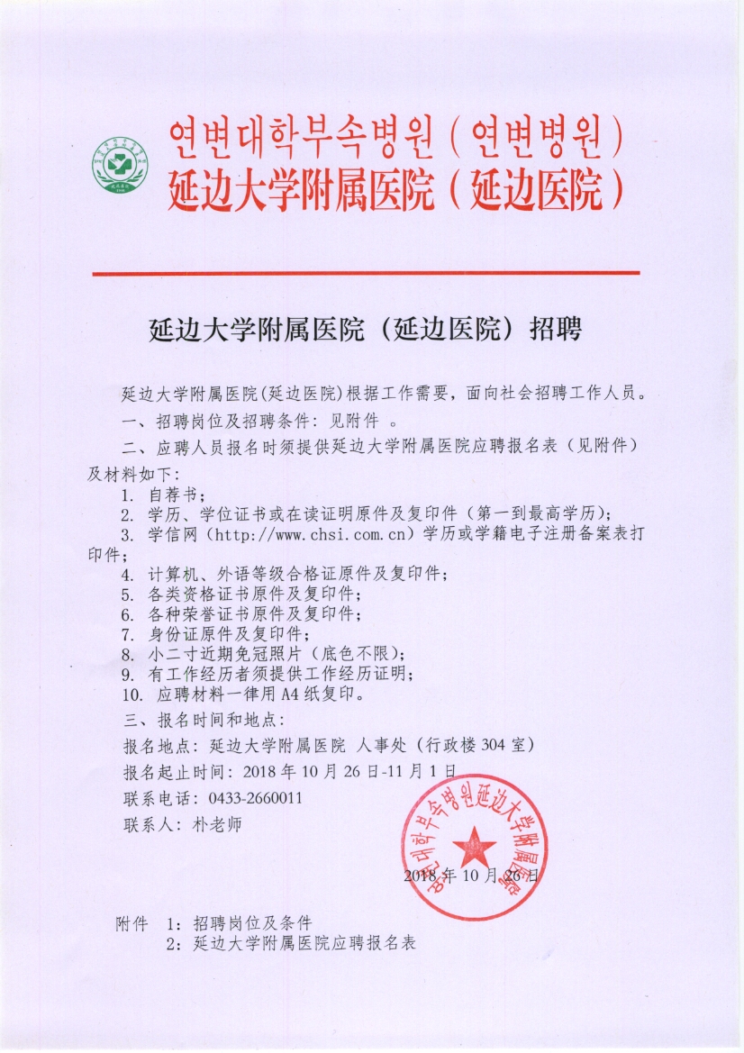 2018年延邊大學(xué)附屬醫(yī)院招聘公告