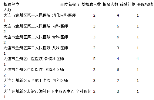 根據(jù)《2015年大連金州新區(qū)部分事業(yè)單位公開招聘工作人員公告》規(guī)定和報(bào)名情況,由于此次公開招聘中有55個(gè)招聘崗位的有效報(bào)考人數(shù)未達(dá)到3:1比例的規(guī)定,現(xiàn)將取消和縮減崗位情況公告如下: