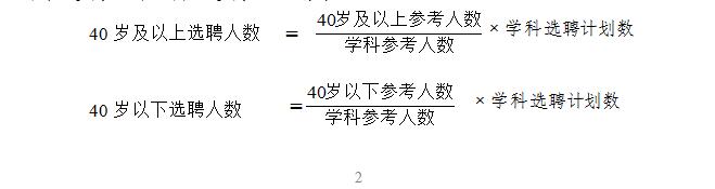 報(bào)考中小學(xué)教師的按考試、考核總成績(jī)從高到低選聘(總成績(jī)?yōu)槲幕荚嚦煽?jī)40%的折后分加上考核分)。選聘計(jì)劃為1人的不分年齡段錄聘;選聘名額在1人以上的,按年齡段(40歲及以上和以下,以1979年7月31日為界)分學(xué)科按比例選聘,具體選聘公式為: