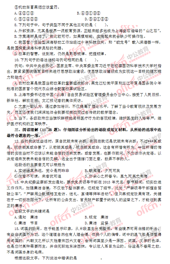 2014上海市公務(wù)員考試行測(cè)(A類)