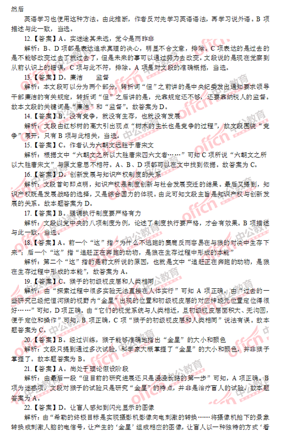 2014上海市公務(wù)員考試行測(cè)答案解析(A類)