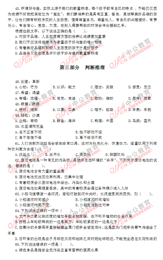 2012年廣東縣以上公務(wù)員考試行測