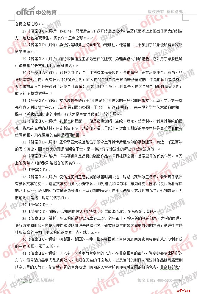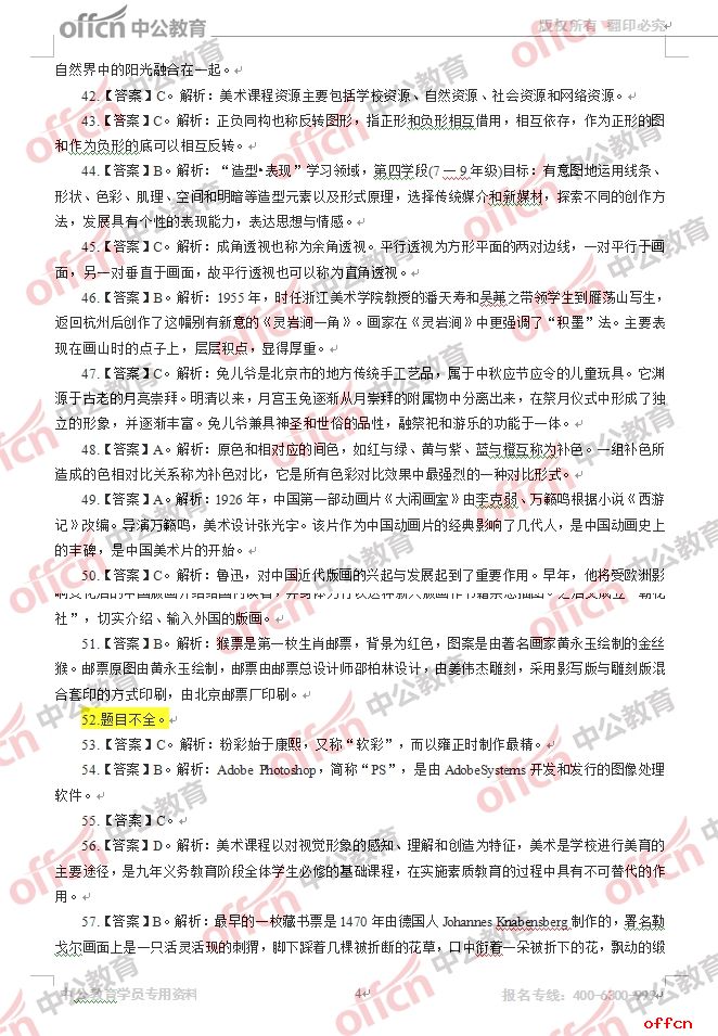 2017年江西教師招聘《初中美術》試題答案及解析
