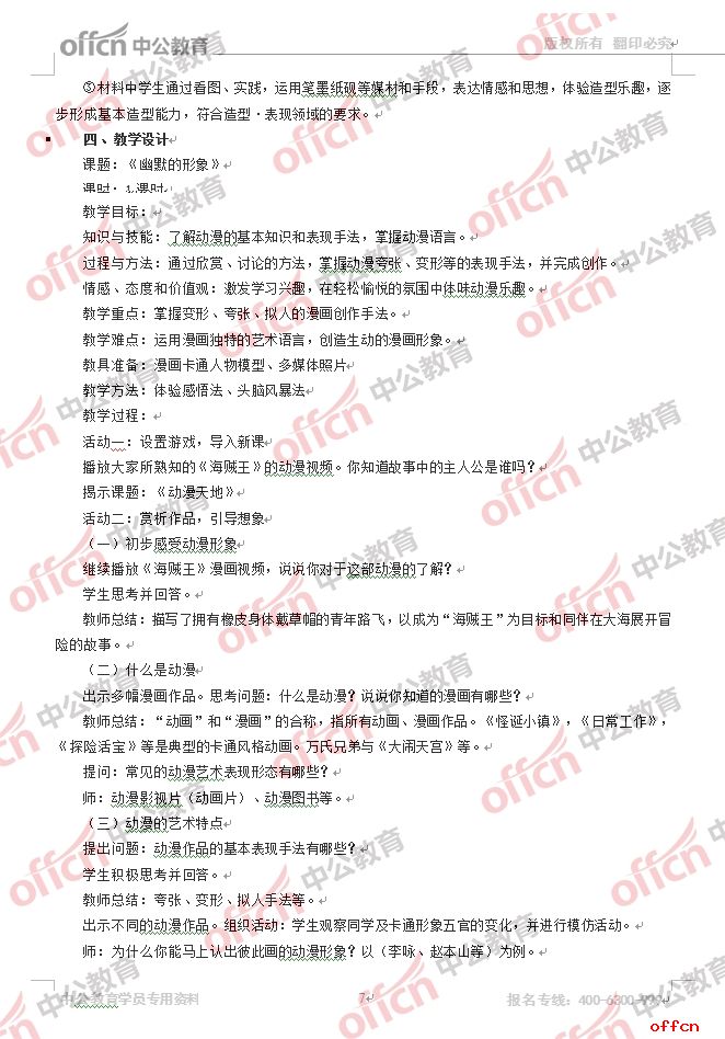 2017年江西教師招聘《初中美術(shù)》試題答案及解析