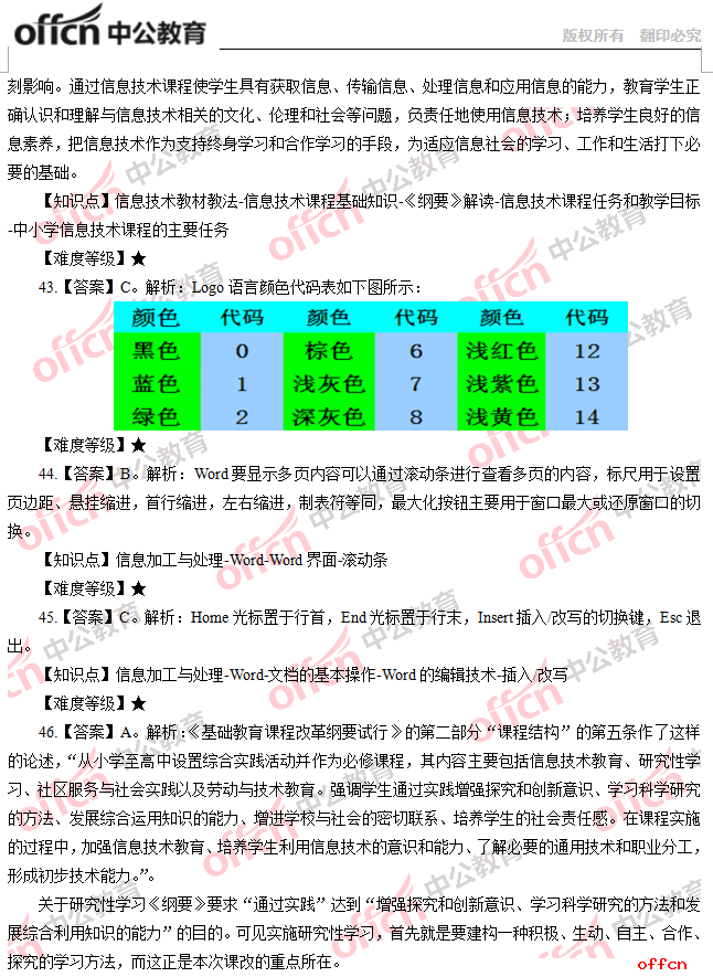2017年江西教師招聘《小學信息技術》試題答案及解析
