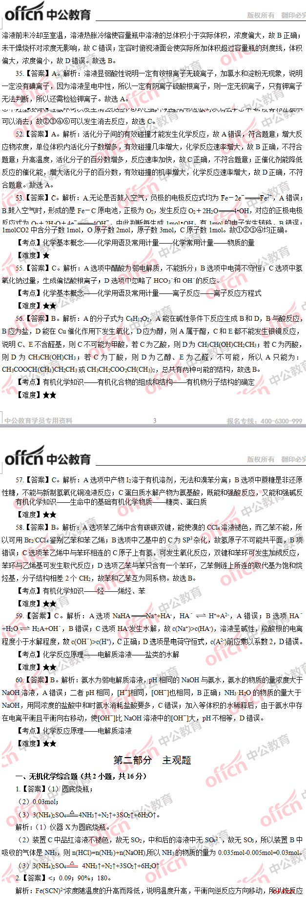 2017年江西教師招聘《高中化學(xué)》試題答案及解析