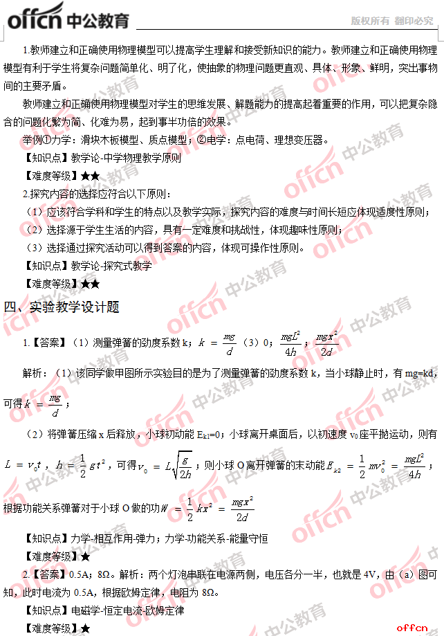 2017年江西教師招聘《高中物理》試題答案及解析
