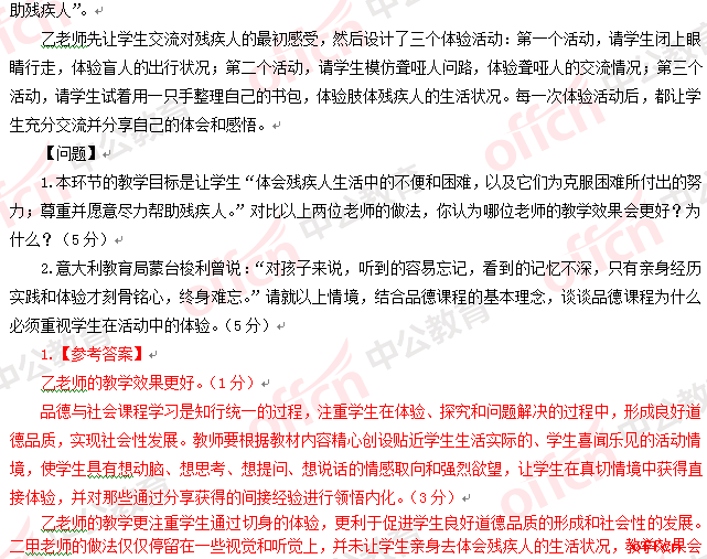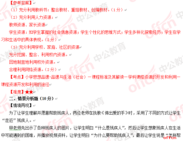 2017年江西教師招聘《小學(xué)品德》試題答案及解析