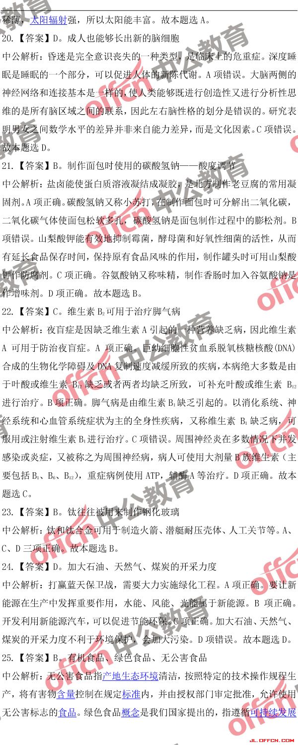 2018吉林公務(wù)員考試行測(甲)歷年參考答案及解析