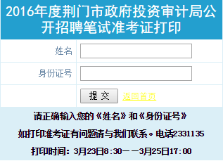 2016湖北荊門市政府投資審計(jì)局招聘筆試準(zhǔn)考證打印入口