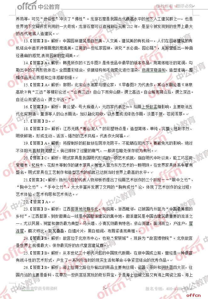 2017年江西教師招聘《初中美術(shù)》試題答案及解析