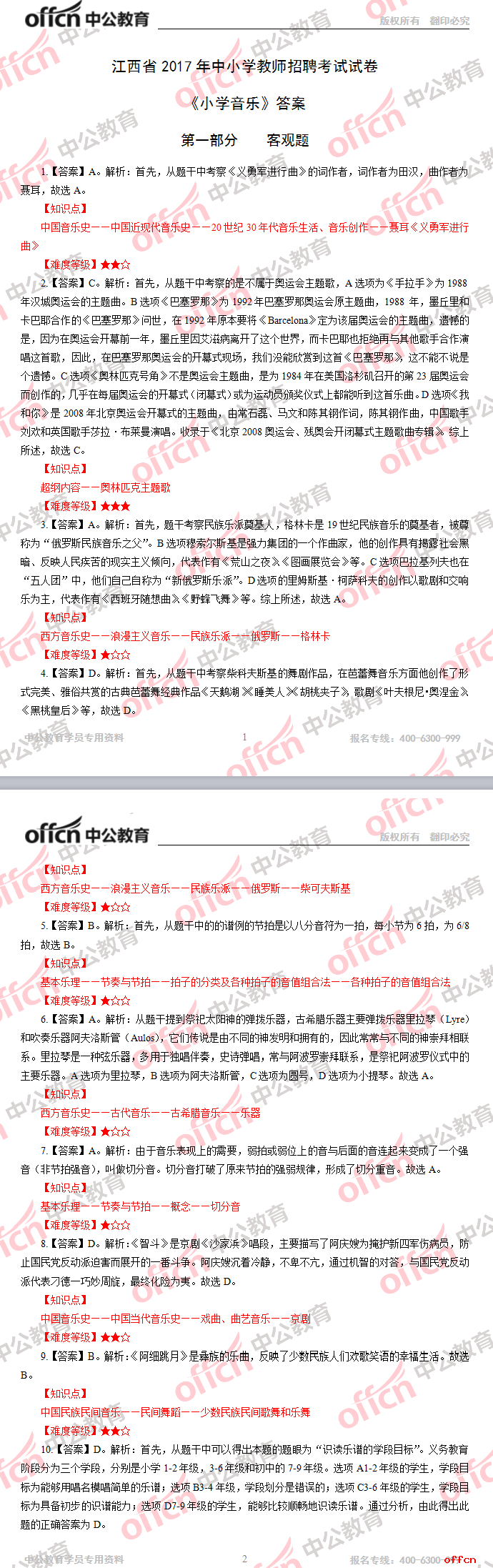 2017年江西教師招聘《小學(xué)音樂(lè)》試題答案及解析