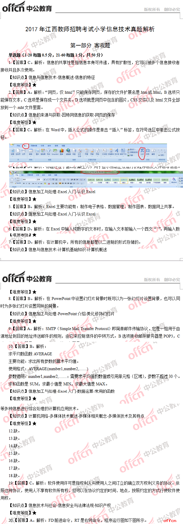 2017年江西教師招聘《小學(xué)信息技術(shù)》試題答案及解析