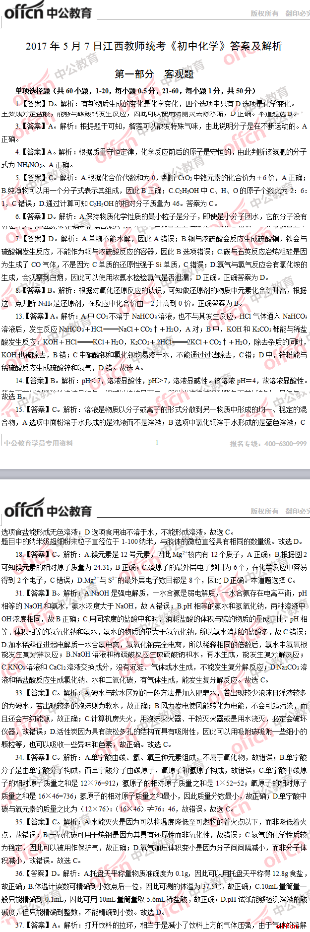 2017年江西教師招聘《初中化學(xué)》試題答案及解析