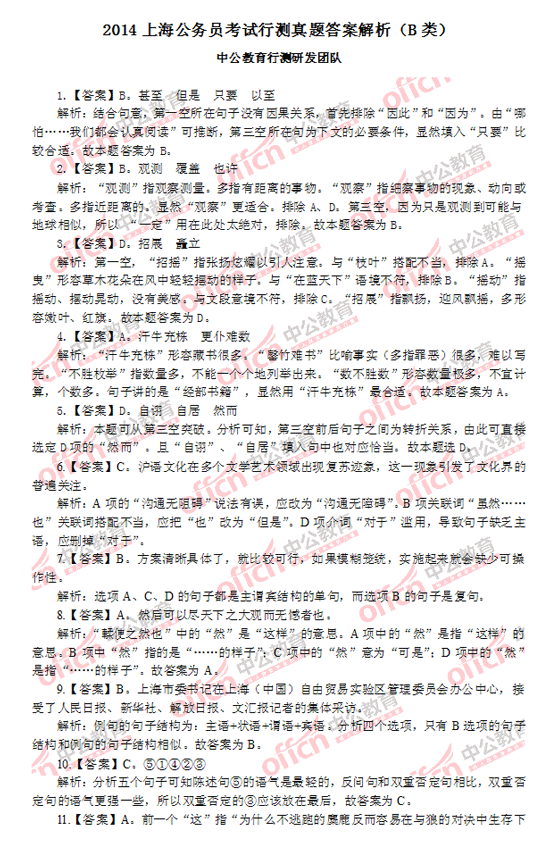 2014上海公務(wù)員考試行測(cè)答案解析(B卷)