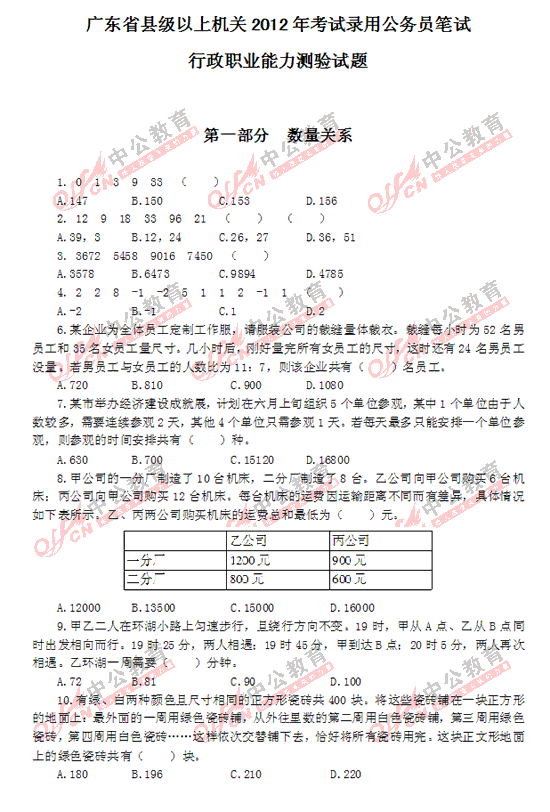 2012年廣東縣以上公務(wù)員考試行測