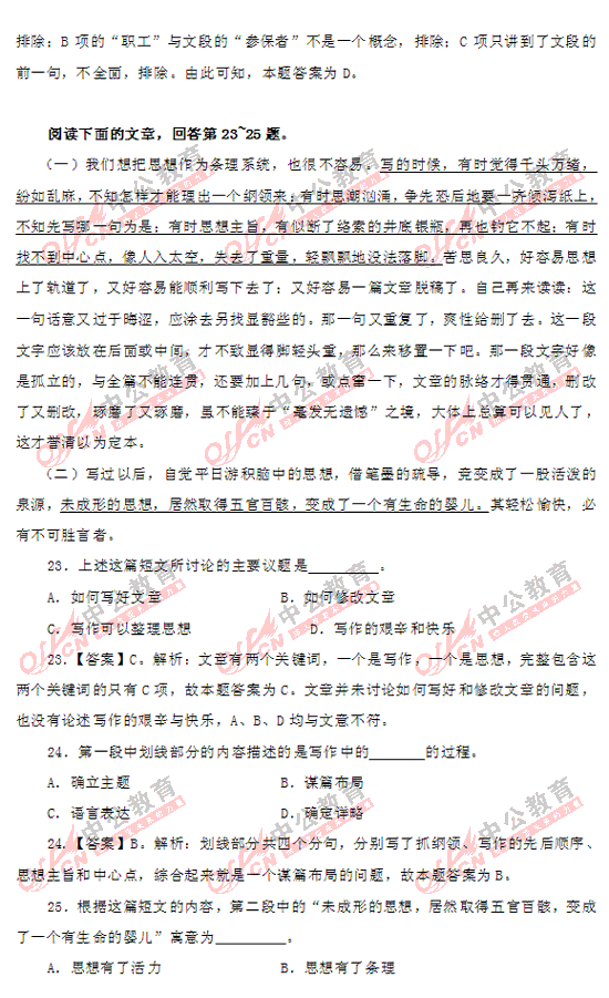 2011上海市公務員考試行測(A類)部分答案及解析
