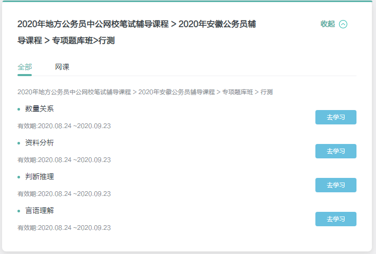 (2)查看列表,通過點(diǎn)擊課程后面的“展開”,可查看課程目錄。