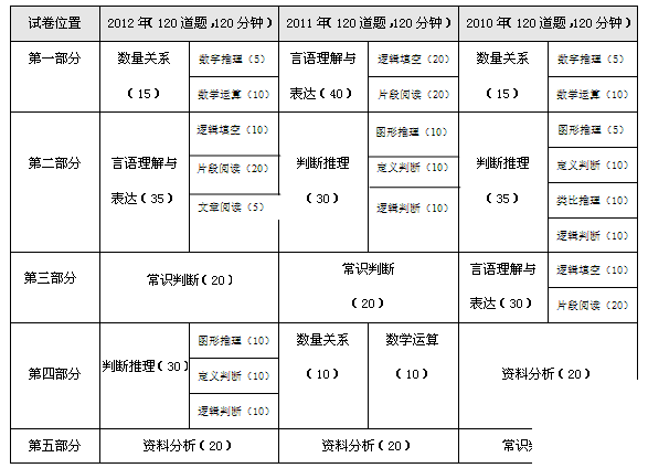2010—2012年天津市公務(wù)員考試行測(cè)題型題量分析