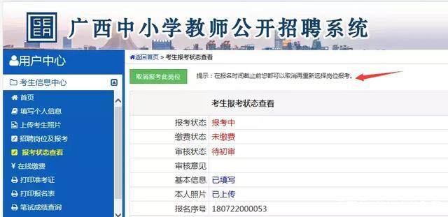 注意:在報名時間截止前您都可以取消再重新選擇崗位報考。