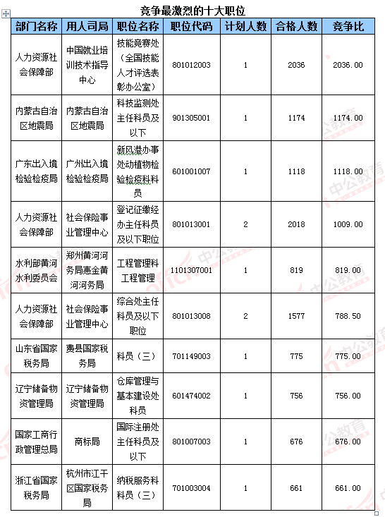 遼寧儲備物資管理局與內蒙古自治區(qū)地震局兩部門競爭比500:1,前者由于招錄人數(shù)少于后者,競爭比增長更為迅速,目測接下來仍將穩(wěn)占首席。