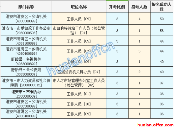 淮安市考報(bào)名人數(shù)最多的十大職位