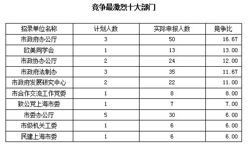 2016年上海市公務(wù)員考試職位報(bào)名第2日:267職位達(dá)到面試比例