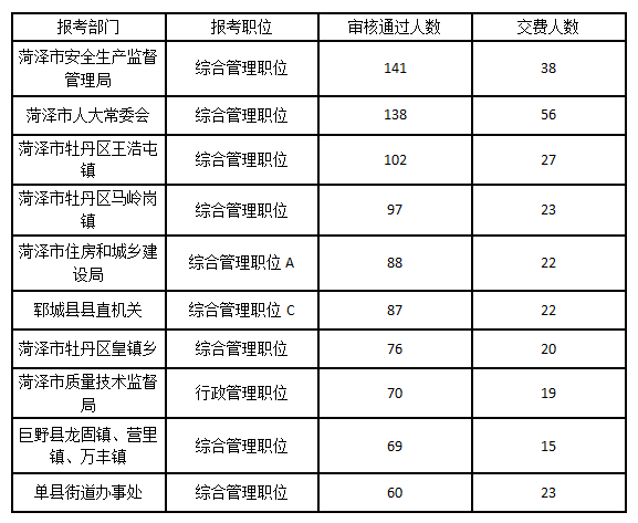| 中共定陶縣委組織部 | 綜合管理職位A | 0 | 0 |