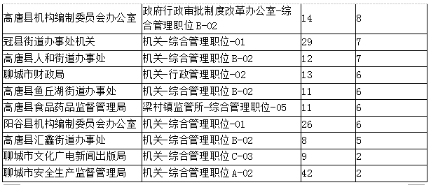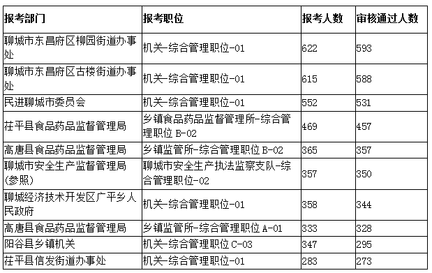 報(bào)名審核通過人數(shù)的后十個(gè)職位: