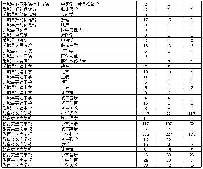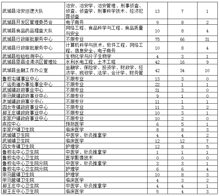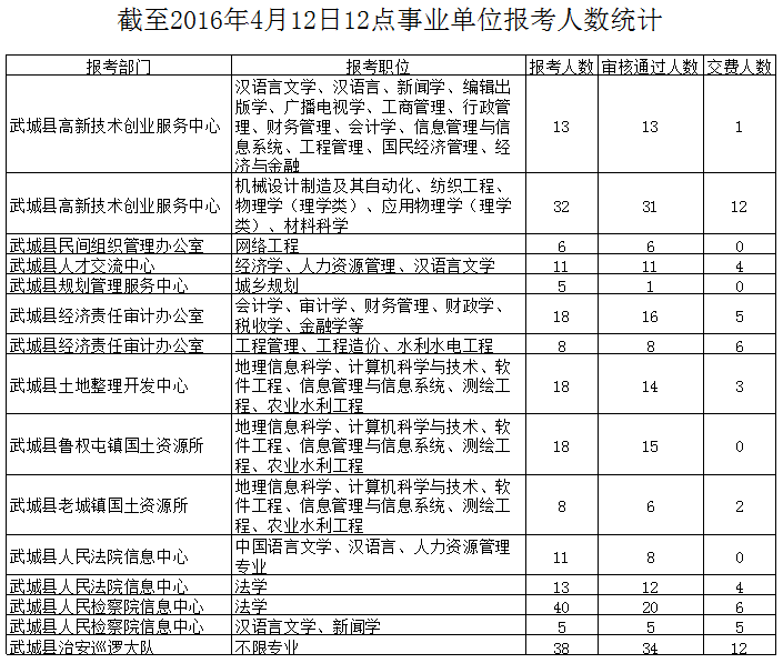 2016山東武城縣事業(yè)編招聘職位統(tǒng)計(4月12日12點)